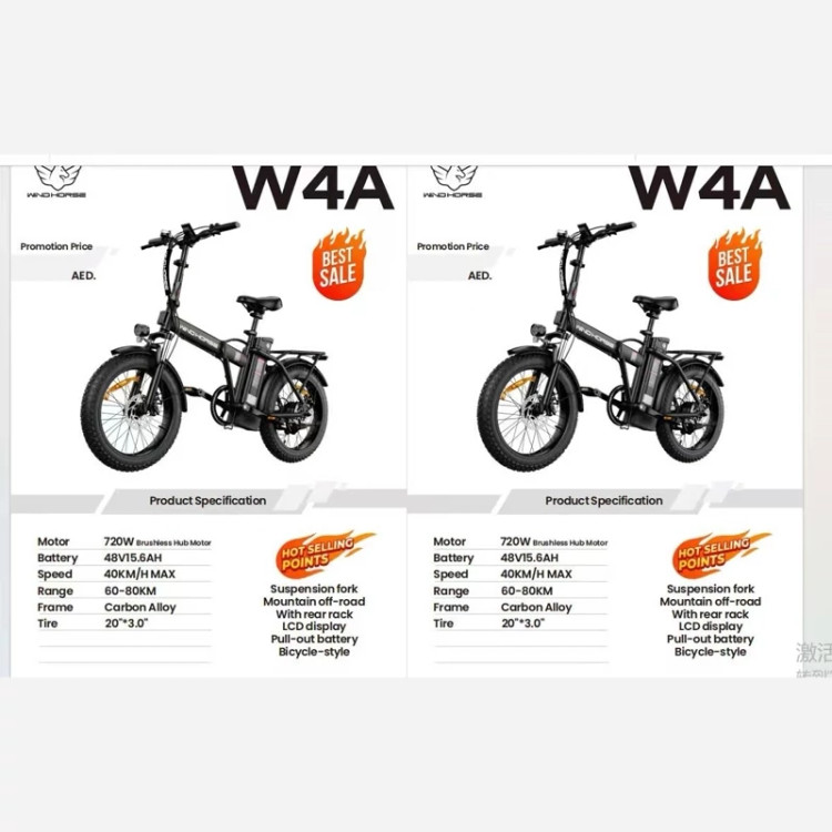 دوچرخه برقی تاشو آفرود تایر پهن WIND HORSE