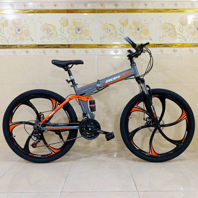 دوچرخه تاشو سایز 26 BURGKI رنگ طوسی نارنجی