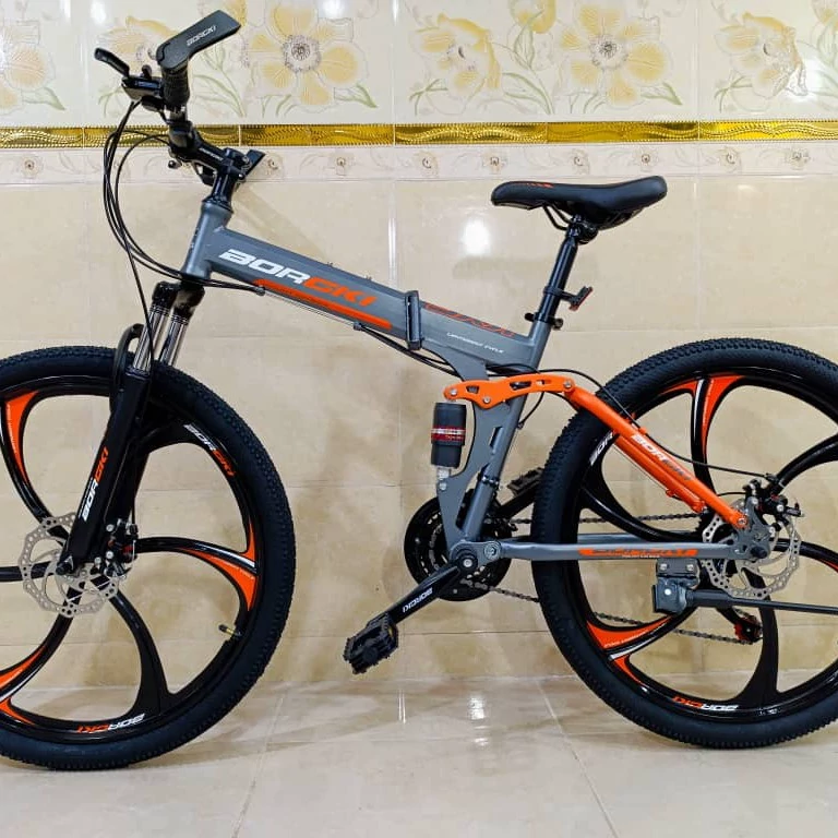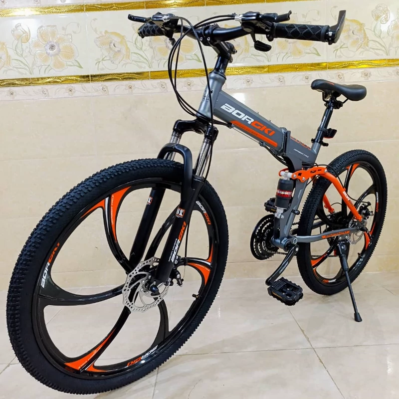 دوچرخه تاشو سایز 26 BURGKI سفارش خلیج رنگ طوسی نارنجی