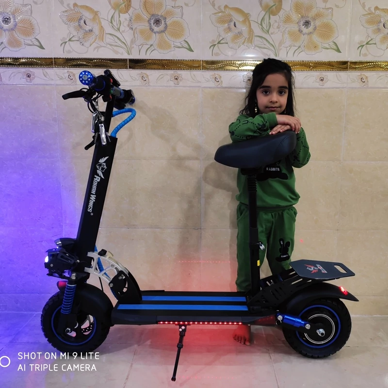 اسکوتر برقی دو نفره روهان وینگز ROHAN WINGS مدل e10 pro max آبی موتور براشلس آلمان