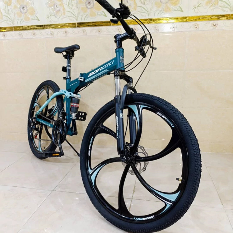 دوچرخه تاشو سایز 26 BURGKI رنگ آبی لجنی
