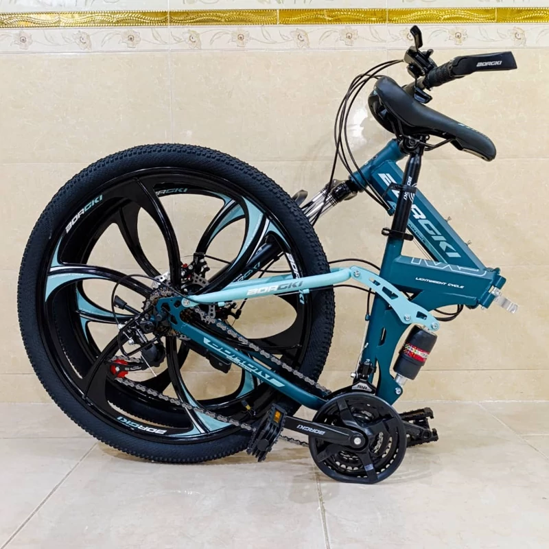 دوچرخه تاشو سایز 26 BURGKI رنگ آبی لجنی
