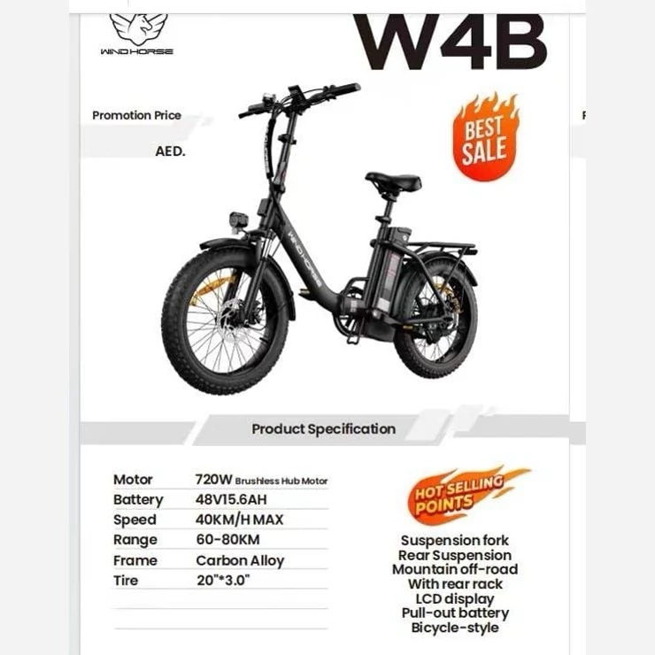 دوچرخه برقی تاشو آفرود تایر پهن ویند هورس VIND HORSE مدل W4